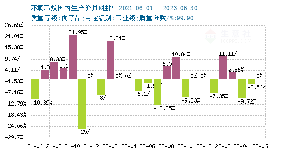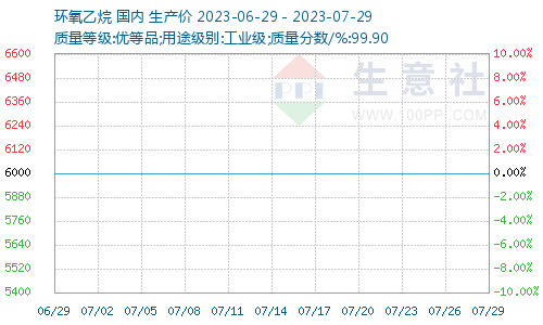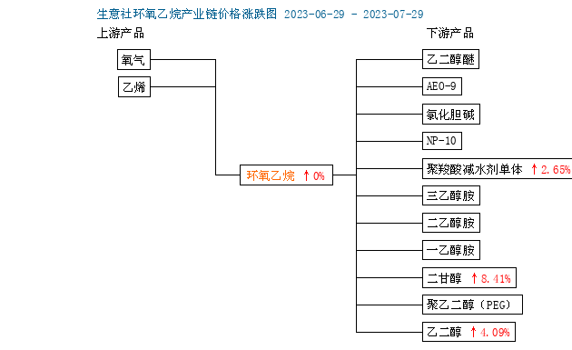 the price of ethylene oxide fell during the month, falling by 200 yuan from 7,550 yuan/ton at the beginning of the month to 6,550 yuan/ton today, a drop of 2.65%.