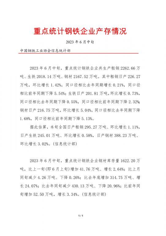 in mid-june 2023 focus on statistics on the production and storage of iron and steel enterprises