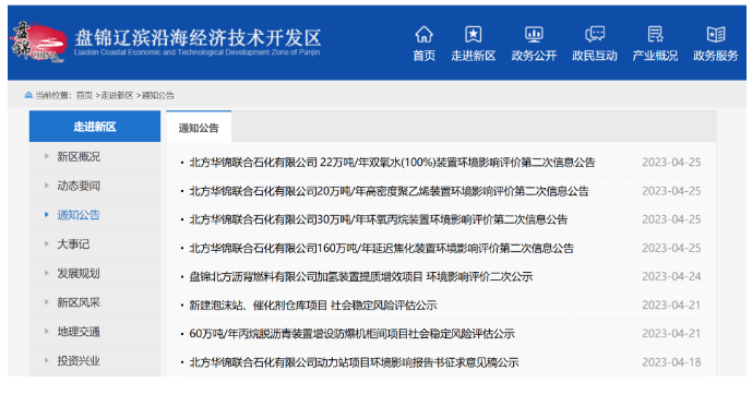 10,000 tons/year of high-density polyethylene, 300,000 tons/year of propylene oxide, 220,000 tons/year of hydrogen peroxide (100%), and 1.6 million tons/year of delayed coking projects will be publicized for the second environmental impact assessment.