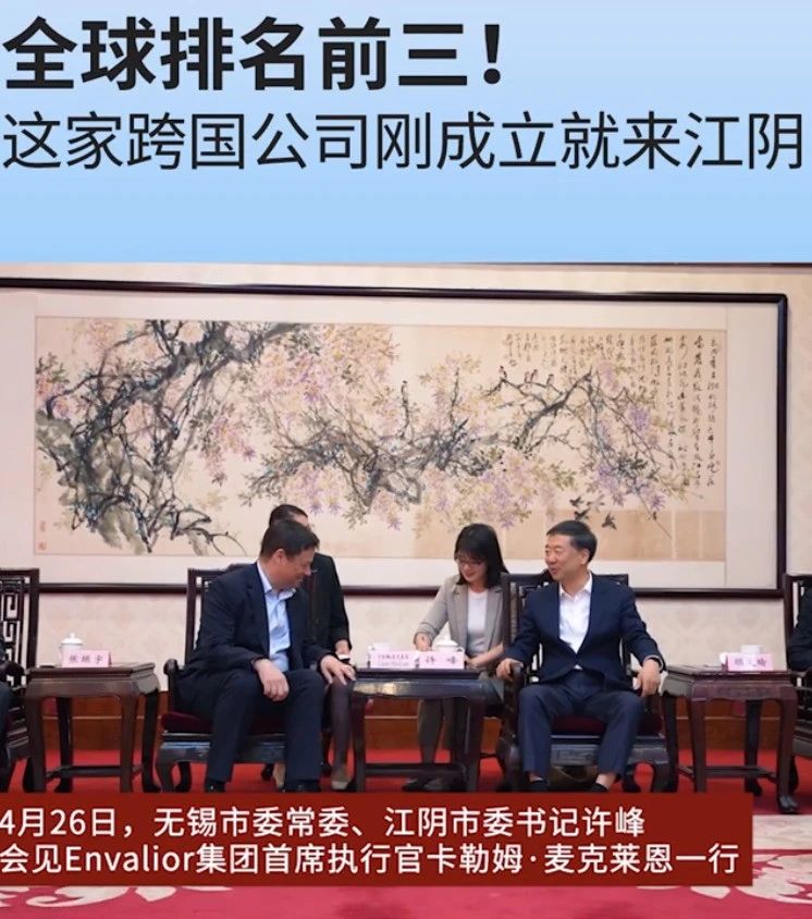maclean visited xu feng, member of the standing committee of wuxi municipal party committee of jiangsu province and secretary of jiangyin municipal party committee. this is the first visit to china by ceo calum maclean since envalior officially announced its establishment on april 3.