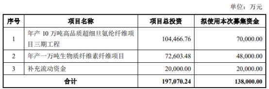on march 21, 2023, xinxiang chemical fiber released the 2022 stock issuance prospectus (revised draft) to specific targets. the total funds to be raised by the company’s issuance of stocks to specific targets is expected to be no more than 1.38 billion yuan (including the original amount), after deducting the issuance expenses the net raised funds will be used for the third phase of the project with an annual output of 100,000 tons of high-quality ultra-fine denier spandex fiber, the project with an annual output of 10,000 tons of biomass cellulose fiber, and supplementary working capital.