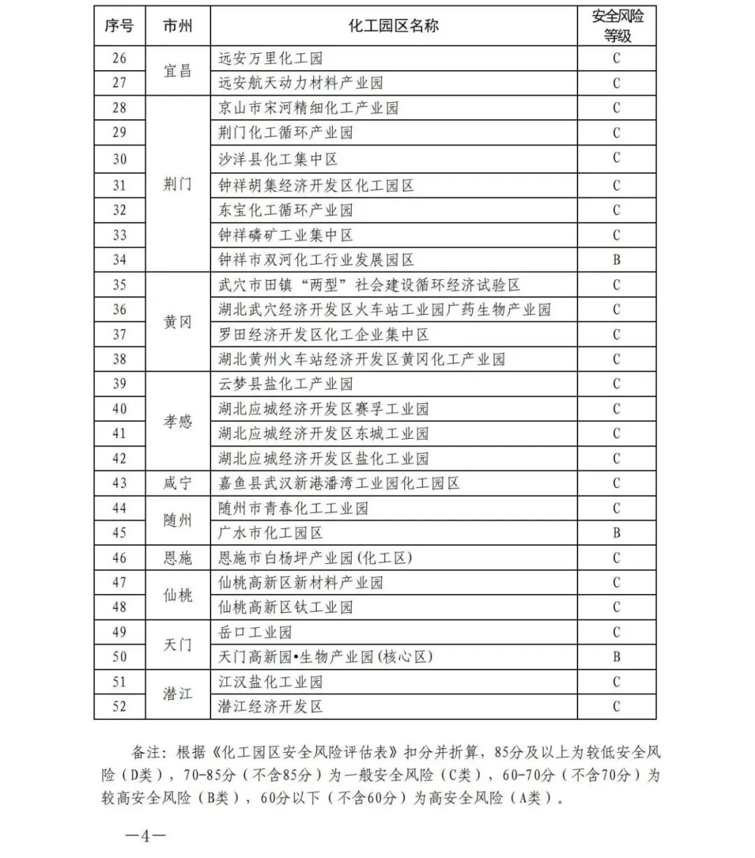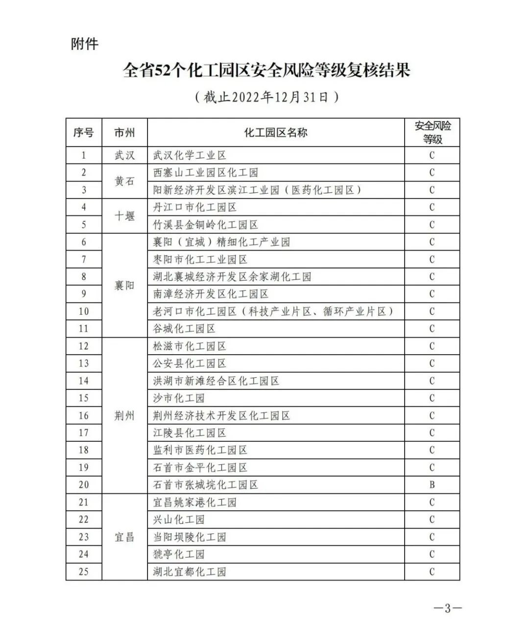 recently, the emergency management department of hubei province issued an announcement on the results of the review of the safety risk level of chemical parks in the province.