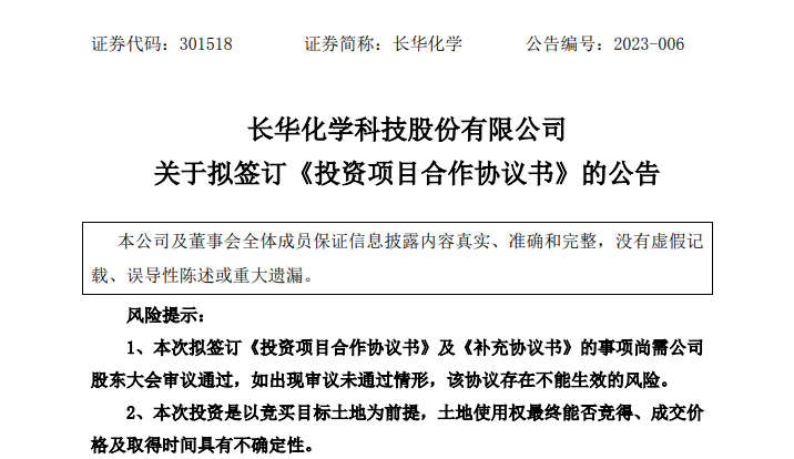 on august 21, changhua chemical issued an announcement on the plan to sign the “investment project cooperation agreement”. the company intends to sign the “investment project cooperation agreement” “supplementary agreement”, it is proposed to invest in the construction of the “carbon dioxide polyether and high-performance polyol project” project, the total planned investment of the project is about 6,000,000,000 yuan, and it will be constructed in phases.