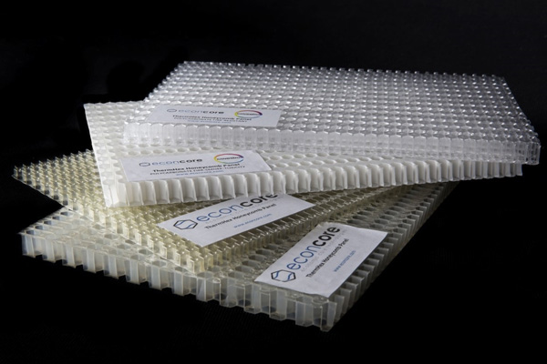 the ultimate goal of the joint development is to provide sandwich panels that meet technical requirements, offer weight advantages, and demonstrate better economics compared to currently used composite or metal solutions. the manufacturing process developed and patented by econcore has significant potential for cost savings as it is a high-speed, fully integrated continuous production process in which the thermoplastic polymer is converted directly into the honeycomb structure, in addition, the sandwich skin layer can be immediately laminated to the core superior.