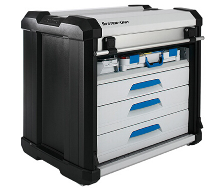 the automotive part on display is the side element in sortimo’s new system-unit, which has excellent stability, durability and weather resistance, and is an ideal part to meet the needs of pickup trucks and flatbed trucks.