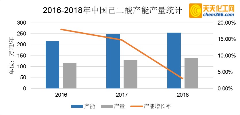 in recent years, the growth rate of my country’s adipic acid production capacity is greater than that of nstream demand. domestic suppliers are facing fierce market competition due to overcapacity. in 2016, henan shenma , shandong hongda’s new production capacity is still being released, and domestic production capacity is constantly rising, with a total domestic production capacity of 2.16 million tons per year. in 2017, the new production capacity of shanxi taiyuan chemical and chongqing huafon continued to be released, and the risk of overcapacity continued to accumulate. with the new production capacity of huafon adipic acid put into operation at the end of 2017, the total domestic production capacity in 2017 reached 2.48 million tons per year. in 2018, shenma’s 75,000-ton/year adipic acid plant was put into operation, and china’s total adipic acid production capacity reached 2.555 million tons in 2018. china has become an important aa production base in the world.