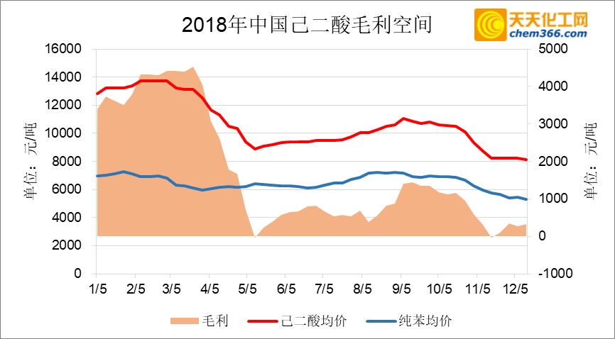 from the perspective of the market price of adipic acid in 2018, the fluctuation range is relatively large, and the difference between the peak and the valley of the price can reach 5,500 yuan/ton; due to the tight supply of domestic manufacturers and the low inventory of the holders; and in the fourth quarter, the profit of the adipic acid market was severely compressed, which was mainly limited by the nstream demand.