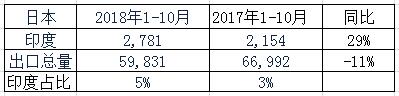 january-october 2018, japan’s pure mdi exports have generally shrunk, but india’s market share has increased , reaching nearly 2,800 tons, an increase of 29% year-on-year, accounting for 5% of total exports. among them, the year-on-year decline in april and july was relatively large, reaching nearly 50%. the increase in january and august-october is mainly due to the increase in demand after the rainy season.