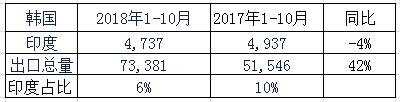 in 2018, south korea’s mdi expanded its production and increased its export efforts. from january to october, the total export volume increased by 42% year-on-year, reaching 73,000 tons. however, the volume exported to india has decreased, around 4,700 tons, a year-on-year decrease of 4%. the export volume of korean manufacturers is related to their sales strategies, resulting in weak supply stability when prices change, which has a certain impact on sales.