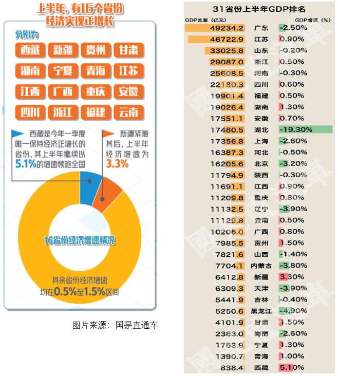 in terms of provinces, among the 31 provinces in the first half of the year, the gdp growth rate rebounded significantly compared with the first quarter. among them, the gdp of 16 provinces achieved positive growth, and the gdp of 15 provinces still declined year-on-year, but the decline narrowed.