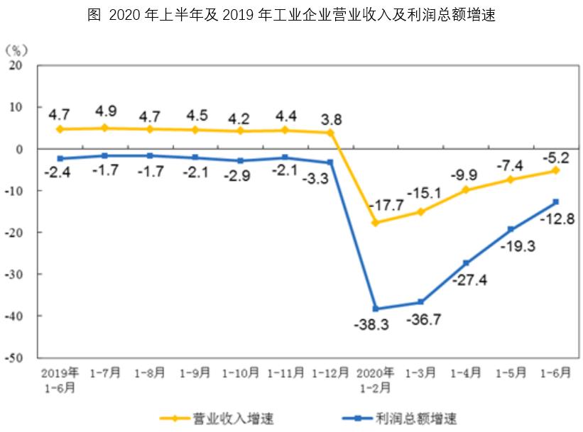 in the first half of the year, the operating income of industrial enterprises above designated size was 46.31 trillion yuan, a year-on-year decrease of 5.2%; the total profit was 2,511.49 billion yuan, a year-on-year decrease of 12.8%, and the decline rate was 6.5 percentage points narrower than that from january to may; operating income profit the rate was 5.42%, a year-on-year decrease of 0.48 percentage points.