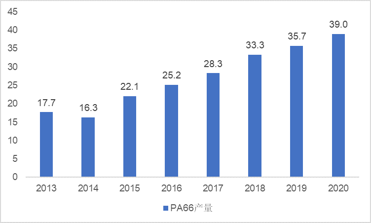 figure4 2013-2020year chinese nylon66production situation ( unit: 10,000 tons)