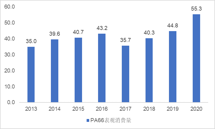figure5 2013-2020year chinese nylon66apparent consumption quantity (unit: 10,000 tons)
