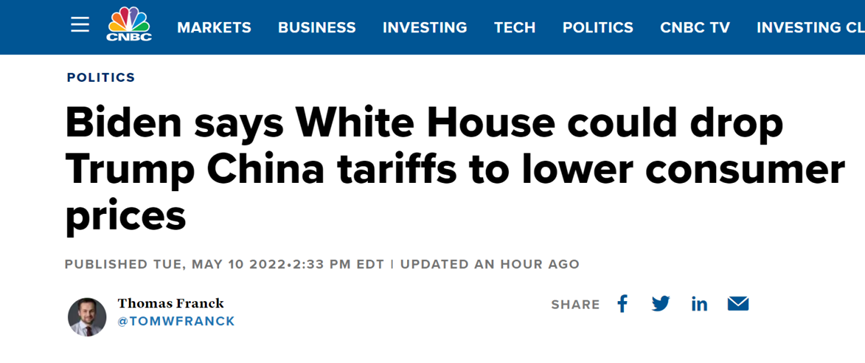 due to recent conflicts between russia and ukraine, continued tension in the supply chain, etc. factors, the us inflation rate has reached a 40-year high. white house officials in the united states have recently hinted that they will adjust the tariff policy against chinese goods.