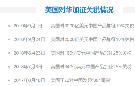 the chart below lists the reasons for the us to impose tariffs on china schedule. as mentioned above, the two additional tariffs that have entered the review process correspond to the additional tariffs imposed on us$34 billion of chinese products on july 6, 2018, and the additional tariffs on us$16 billion of chinese products on august 23, 2018. tariff.