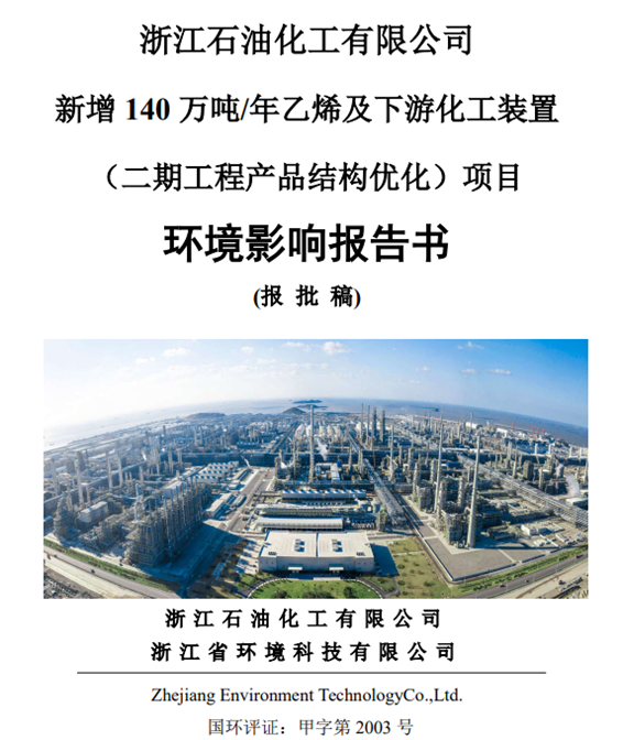 7on march 22, the daishan branch of zhoushan ecological environment bureau announced that zhejiang petrochemical co., ltd. has added 1.4 million announcement of approval opinions on the project of ton-year ethylene and nstream chemical equipment (optimization of product structure of the second phase project).