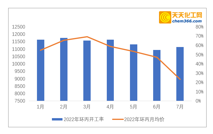 it is also new production capacity, 2021 in the middle of the year, the second phase of hishell, sinochem quanzhou, and fuqiang new materials have been put into production one after another, cyproterene broke the 20,000 yuan/ton mark. the main reason is that the domestic demand continues to improve, peripheral saudi arabia, new shell maintenance, coupled with the force majeure of the polyether cyclopropylene plant in the united states, the export volume of polyether, which accounts for 78% of the nstream consumption of cyclopropane, has increased significantly, with a month-on-month increase of 47.5% to 62.7 tons. so far in 2022, the second phase of zhenhai, jiangsu yida, and bohai chemical have been put into production smoothly, and china’s cyclopropane production capacity has reached 4.947 million tons, a year-on-year increase of 15.1%. the price of cyclopropane fell from 12,250 yuan/ton at the beginning of the year to 7,900 yuan/ton, a drop of 35.5%.