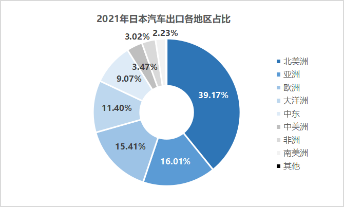 automobiles produced in japan are widely sold around the world. judging from 2021 export data, north america is the largest destination for japanese auto exports, accounting for nearly 40%, followed by asia and europe. the popularity of japanese cars in the north american market is due to the fact that north america’s leading economic development level in the world has made consumers in this market more capable and willing to spend on cars. on this basis, due to the large area and sparse population in north america, and the high labor cost of auto repair, consumers have higher requirements for the fuel consumption and quality stability of cars. on the whole, the fuel efficiency, stability and cost performance of japanese cars at the same price are better than those of american cars. this advantage makes japanese cars gradually win in the market competition.