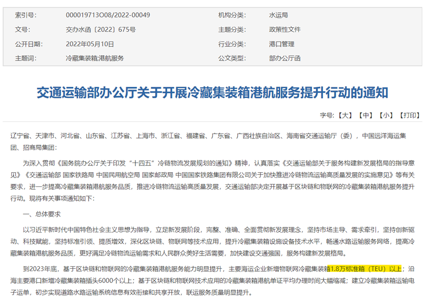 recently, the general office of the ministry of transport issued the “notice on carrying out actions to improve refrigerated container port and shipping services” “, the “notice” pointed out that by 2023 at the end of the year, refrigerated containers based on blockchain and internet of things the service capabilities of ports and shipping have improved significantly, and major shipping companies have added iot refrigerated containersbox1.8 10,000 teu (teu) above.