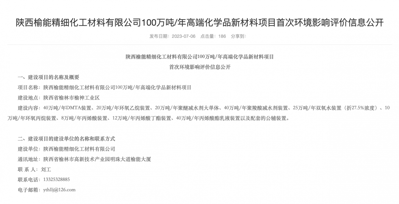on july 6, the official website of shaanxi yulin energy group released the first environmental impact assessment announcement of the 1 million tons/year high-end chemical new material project.
