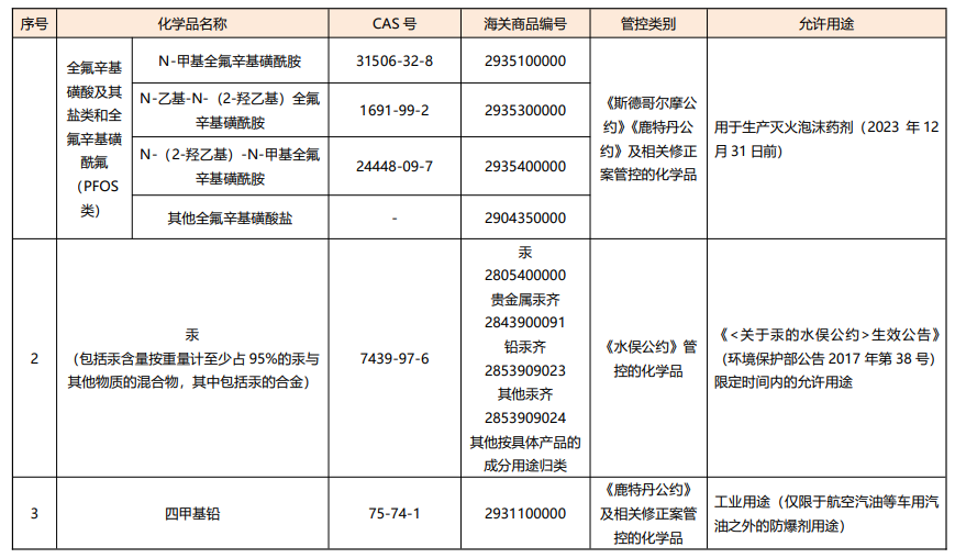2. delete the chemical substances that have been phased out in my country and the uses that have been banned. in accordance with the implementation process of the “stockholm convention” and the relevant provisions of the “list”, hexabromocyclododecane in the “inventory” has been deleted, and perfluorooctane sulfonic acid and its salts and perfluorooctane sulfonyl fluoride (pfos) have been deleted. category), only the production of fire extinguishing foam agents is reserved.