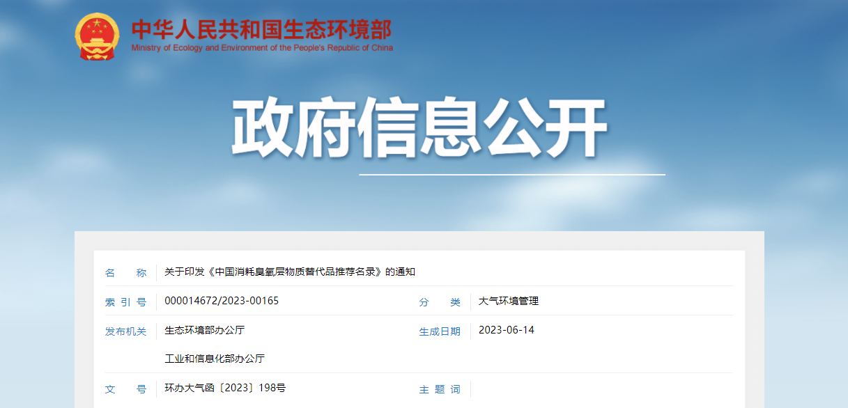 on june 12, 2023, the general office of the ministry of ecology and environment and the general office of the ministry of industry and information technology issued a notice on printing and distributing the “recommended list of substitutes for ozone depleting substances in china”. the content of the notification is as follows: