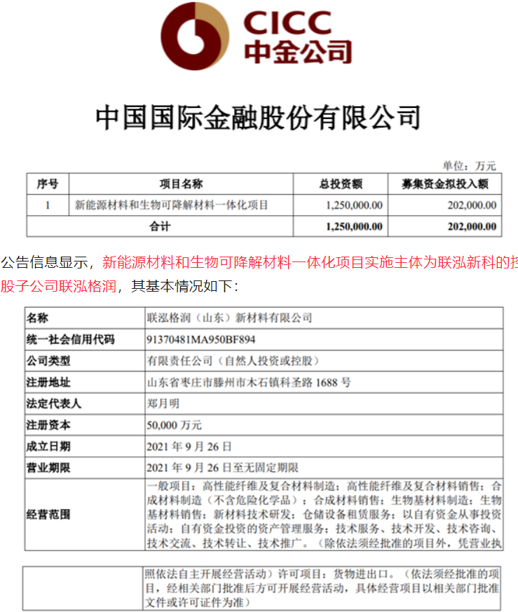 shares (including the original number), the total raised funds shall not exceed 2.02 billion yuan (including the original number), and the net raised funds after deducting the issuance expenses are planned to be invested in new energy materials and biodegradable materials integration projects.