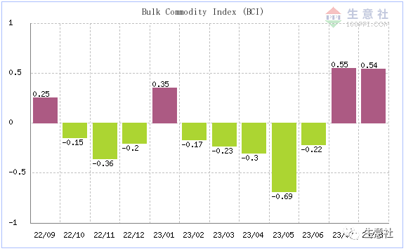 it is understood that the business society bci (bulk commodity index), as a leading indicator of the manufacturing industry, has been so far, it has successfully predicted macroeconomic trends many times in a row. as an important part of businessbao’s data strategy, bci aims to help governments, institutions, and enterprises make better decisions. the index monitors the prices of 100 major basic raw materials, compares the prices at the beginning and end of the month, counts the number of monthly rising varieties and the number of falling varieties, and then divides the number of rising varieties from the number of falling varieties by the total to get a ratio. reflects the prosperity of the manufacturing economy.