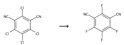 in a 250 ml three-neck flask, add 150 ml of dry sulfolane, and then add 26.6 g of dried chlorothalonil. under mechanical stirring, raise the temperature to 70°c to completely dissolve it. quickly add 25.0 g of anhydrous water. potassium fluoride and 0.5 grams of 18-crown ether-6 are used as phase transfer catalysts, and a drying tube is installed on the side of the tube, and then the temperature is controlled between 160-180°c. after 8 hours of reaction, cool to room temperature and filter. remove the precipitate (kf+kcl), and wash the above precipitate 2-3 times with 20 ml of sulfolane (the precipitate weighs about 24.9 grams). combine the filtrate, pour the filtrate into 500 ml of water, stir magnetically for 2 hours, suction filtrate to obtain 17.6 grams of precipitate, and dry afterwards, cyclohexane was selected for recrystallization to obtain white needle-like crystals weighing approximately 16.4 grams (yield 70.7%). mp: 102-104℃.