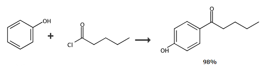 p-hydroxybenzopentanone, also called 4-n-valerylphenol, is an organic intermediate and pharmaceutical intermediate that can be used to prepare acylphenoxyacetic acid compounds. it can be prepared in one step from phenol and n-valeryl chloride.