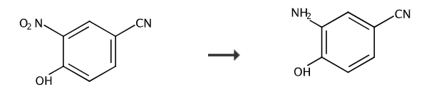 dissolve 4-hydroxy-3-nitrobenzonitrile (0.5 g, 3.05 mmol) in ethanol (20 ml) and methanol (10 ml) and add raney-nickel at room temperature (1 ml, 10% aqueous solution), then add hydrazine monohydrate (0.296 ml, 6.09 mmcl). the mixture was stirred at room temperature overnight. the mixture was then filtered through celite and concentrated by rotary evaporation. the residue was purified by chromatography (silica gel, n-hexane to ethyl acetate) to give 2-amino-4-cyanophenol (200 mg, 49%). 1h nmr: (dmso-d6, 400 mhz) 4.99 (2 h, br.s), 6.74 (1 h, d, j 7.9), 6.82-6.89 (2 h, m), 10.23 (1 h, brs).