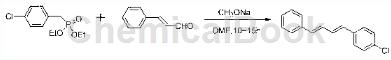 preparation process: add the product in 1 (39.4g, 0.15mol) to 100ml dry dmf, add 28% sodium methoxide (28.9g, 0.15mol) to the above solution, stir evenly, and add cinnamaldehyde (15.8g, 0.12mol)/dmf (10ml) solution was added to the mixture, and after stirring at room temperature for 10~15h, the mixture was poured into 300ml of water, and a small amount of hcl solution was added to obtain a large amount of white solid. filter and use 20ml of methanol. washes. then pour the white solid into 100ml methanol, stir, filter (twice), and dry under reduced pressure at 70°c to obtain white powder 1-chloro-4-(4-phenyl-1,3-butadiene)benzene , about 26g, yield 90%. (melting point, characterization data).