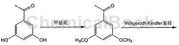 1) add 1.52g (0.010mol) 3,5-dihydroxyacetophenone and 10ml water into the reaction bottle, and add 6.36g (0.060mol) about 20% mass of carbonic acid while stirring at a constant temperature of 0°c. sodium aqueous solution and 1.68ml (0.020mol) dimethyl carbonate solution were added dropwise for about 3 hours. after the reaction was continued for 2 hours, the reaction solution was poured into 20ml of ice water and left to cool. then, the brown solid 3,5-dihydrogen was obtained by suction filtration. methoxyacetophenone 1.16g, yield 64.44%.