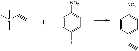 4-nitrophenylacetylene is an organic intermediate that can be prepared from 1-iodo-4-nitrobenzene in two steps.