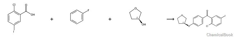 (2-chloro-5-iodophenyl)[4-[[(3s)-tetrahydro-3-furyl]oxy]phenyl]methanone belongs to ketone organic compounds and is a pharmaceutical intermediate , can be used to prepare c-aryl glucoside sglt2 inhibitors with the following general formula. sglt2 is the major na+/glucose cotransporter in the epithelial cells of the s1 segment of the proximal tubule and is responsible for 90% of glucose reabsorption in the kidney. sglt2 inhibitors inhibit renal glucose reabsorption, allowing diabetic patients to reach normal plasma glucose levels through urinary glucose excretion, thereby increasing insulin sensitivity and delaying the development of diabetic complications.