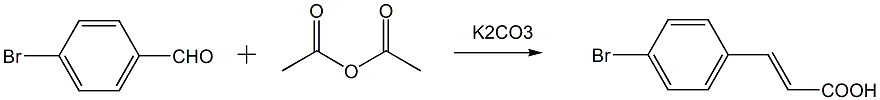 in a three-necked flask equipped with a reflux condenser and a drying tube, add 4-bromobenzaldehyde, acetic anhydride and anhydrous potassium carbonate (or anhydrous sodium carbonate, anhydrous hydrogen carbonate) with an equivalent ratio of 1:4:1.5 sodium), stir and reflux at 130~140°c. stop the reaction after the raw material 4-bromobenzaldehyde has reacted. prepare 20% sodium hydroxide aqueous solution. when the system cools to 80~90°c, adjust the ph to 8~10 after the system is cooled to room temperature, add a little activated carbon, boil and filter while hot to obtain filtrate 1. transfer the filter cake to the three-necked flask of the original reaction and add water. add sodium hydroxide solution to adjust the ph to 8~10. heat at 100°c for 2 hours and then filter while hot to obtain filtrate 2; combine filtrate 1 and filter cake 2, cool, slowly add concentrated hydrochloric acid dropwise to the filtrate, adjust the ph to 4, let it stand overnight until it is fully separated, and filter with suction. the filter cake is washed with water, dried and weighed to obtain (e)-3-(4-bromophenyl)acrylic acid;