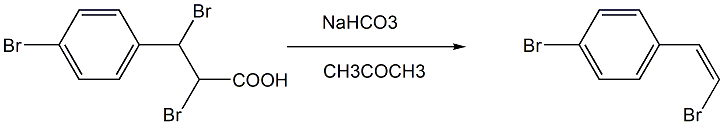 add acetone, 2,3-dibromo-3-(4-bromophenyl)propionic acid and sodium carbonate (or sodium bicarbonate) with an equivalent ratio of 1:3 in a single-necked flask, and heat at 55 to 60°c. stir and reflux, stop the reaction, cool, evaporate acetone under reduced pressure, add water to the system, extract with ether, and dry with anhydrous na2so4; after evaporating ether under reduced pressure, the crude product (z)-1-(4-bromo) is obtained phenyl)-2-ethyl bromide;