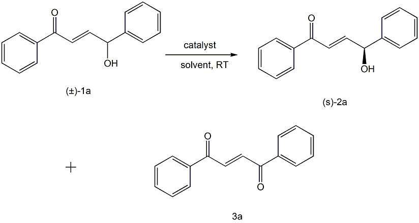 reaction conditions: (±)-1a (0.1mmol), catalyst (0.01mmol) reacted in solvent (1.0ml) at room temperature for 3 hours.
