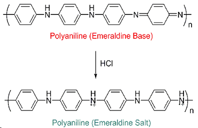 polyaniline can be divided into two forms: intrinsic state and doped state. intrinsic state polyaniline can be regarded as a copolymer of p-phenylenediamine units and quinonediimine units. the benzene and quinone content can be used the oxidation or reduction mode changes, but the structures that can exist stably include fully reduced polyaniline (leb), intermediate oxidized polyaniline (eb), and fully oxidized polyaniline (png). the intermediate oxidation state of polyaniline has y=0.5, that is, the repeating unit is composed of 3 benzene rings and 1 quinone ring. it is the most common intrinsic form of polyaniline.