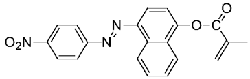the specific steps are as follows: at 0°c, use methylene chloride as the solvent, add 0.01-1mol/l 4-(4-nitrophenylazo)-1-naphthol or 4-[(4-ethoxy phenyl)azo]naphthol solution was added dropwise to methacrylic acid, 4-(4-nitrophenylazo)-1-naphthol or 4-[(4-ethoxyphenyl)azo] the molar mass ratio of naphthol to methacrylic acid is 2:1-1:5. add 4-dimethylaminopyridine (dmap) and dicyclohexylcarbodiimide (dcc) to the system. the molar mass ratio of dmap and dcc is 1:5-1:20; the reaction is first carried out at 0°c for 2-5 hours, after raising the temperature to 25°c, continue the reaction for 12-24 hours to obtain the azo product.