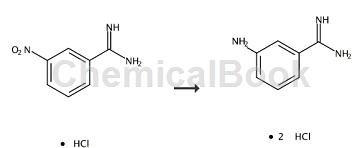 3-aminobenzamidine dihydrochloride belongs to the amidine organic matter. it can be used as an organic intermediate. 3-nitrobenzamidine hydrochloride can be prepared from trinitrobenzonitrile, and then the nitrobenzene dihydrochloride can be reduced to preparation of 3-aminobenzamidine dihydrochloride.