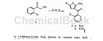 the etizolam intermediate is prepared as follows: o-cyanoethyl chloride is treated with 1,4-dithian-2.5-diol and ‘or 1-butyraldehyde to obtain the etizolam intermediate, with a yield of 57%.
