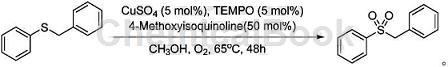 sulfone compounds are a class of organic compounds with wide applications. the sulfonyl groups they contain are widely found in various chemical substances such as pharmaceuticals, agricultural chemicals, and functional materials. selective oxidation using thioethers is one of the most common methods for the synthesis of sulfones. benzyl phenyl sulfone can be used as a pharmaceutical synthesis intermediate. in the existing research on the selective oxidation of thioethers into sulfone compounds, acids, metal oxides, organic peroxides, inorganic peroxides, halogens, etc. are commonly used as oxidants. the dosage of these oxidants is generally excessive, and there are it has shortcomings such as being difficult to control and difficult to separate. oxygen, as the most ideal oxidant, has always been a hot research topic. however, there are still many problems in the study of oxygen as an oxidant to catalyze the selective oxidation of thioethers to sulfone compounds, such as adding a large amount of aldehydes as sacrificial agents, complex catalyst synthesis, and high cost. high, narrow application range, etc.