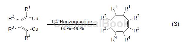 alkenyl copper compounds are coupled with oxidants in the presence of 1,4-benzoquinone to generate conjugated diene compounds, such as dienyl copper compounds, and 1,4-benzoquinone is added for self-coupling reaction, which is successful. cycloctatetraene derivatives (formula 3) [3] were prepared.
