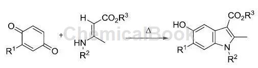 it is worth emphasizing that another important use of 1,4-benzoquinone is in the synthesis of 5-hydroxyindole derivatives (formula 10) [10]. the reaction is very simple and has a wide substrate selectivity.
