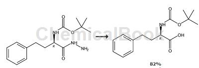 preparation of (2r)-n-amino-2-[(tert-butoxy)carbonylamino]-4-phenylbutanamide: hd-hphe-oh (44.0g, 245mmol) in 1:1 h2o/t-buoh (350 ml) was treated with powdered naoh (10.8 g, 270 mmol) at 22°c followed by three aliquots of boc2o (58.9g, 270mmol). the resulting suspension was stirred for 16 hours, then diluted with h2o (300 ml) and washed with et2o (3 × 200 ml). the remaining aqueous solution was acidified (ph 5) with acoh and washed with ethyl acetate (3 × 250 ml). note: during the ethyl acetate wash, add additional acoh to the aqueous layer to maintain ph. the combined organic extracts were washed with h2o (250 ml) and saturated nacl (250 ml), then dried over na2so4, filtration and concentration in vacuo gave a white solid (47.7 g, 171 mmol). the original et2o wash solution was acidified with aqueous acoh solution to precipitate unreacted amino acids (6.8 g, 38 mmol). additional boc-protected material (8.51 g, 30.4 mmol) was recovered from the filtrate using the extraction procedure described above; combined yield, 56.2 g, 201 mmol, 82.0%. the product was used in subsequent reactions without further purification.