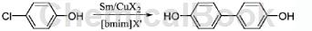 the preparation of 4,4′-biphenyldiphenol is as follows: add 3g of newly prepared metal samarium powder and 0.26g of anhydrous copper chloride to a dry reaction vessel in sequence, and stir magnetically. then add 3.4g of p-chlorophenol and 10 ml of chlorobutylmethylimidazole that has been dried beforehand. the reaction was carried out at room temperature. the color of the reaction mixture became darker within 3 hours, and the reaction was continued for 8 hours. the reaction solution was extracted with ethyl acetate, and the crude product of 4,4′-biphenyldiphenol was obtained after post-treatment. then it was further separated by column chromatography and purified by recrystallization to obtain 4,4′-biphenyldiphenol with a yield of 87%. white solid, melting point 280-284°c. 1hnmr (500mhz, cdcl3) δppm 8.32 (s, 2h), 7.41 (d, j = 8.8hz, 4h), 6.89 (d, j = 8.4hz, 4h). in acetic acid dichloromethane is added to the residual liquid after ethyl ester extraction, and the recovered ionic liquid is obtained by stirring, standing, transferring, merging, and evaporating to recover the solvent.