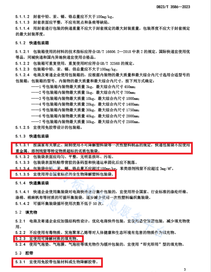 the “packaging selection” chapter of “general requirements for green packaging of e-commerce express in heilongjiang province” shows: