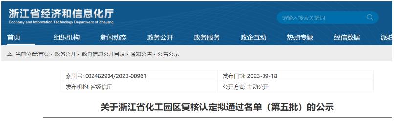 recently, the zhejiang provincial department of economy and information technology issued a public notice on the list (fifth batch) of chemical industry parks in zhejiang province that are expected to pass the review and accreditation. three chemical parks including the shengzhou economic development zone chemical park are expected to pass the review and accreditation. publicity period: september 19, 2023 – october 8, 2023.