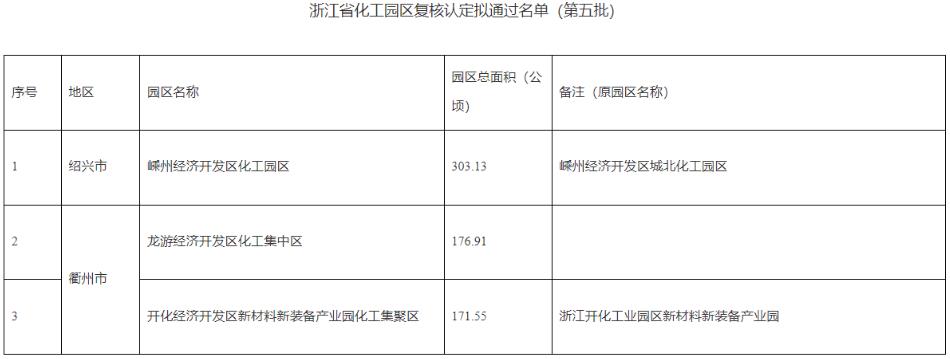 announcement of the list of candidates to be approved for review and certification of zhejiang chemical industry park (fifth batch)
